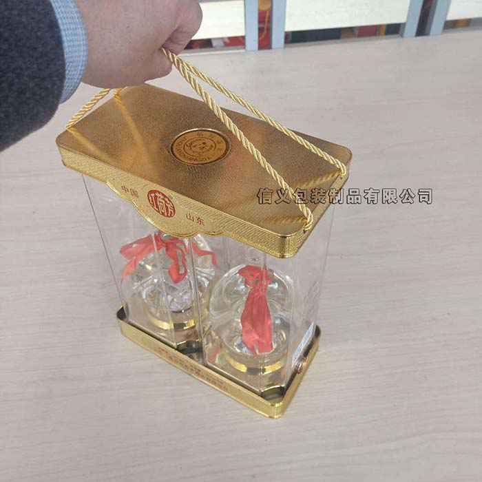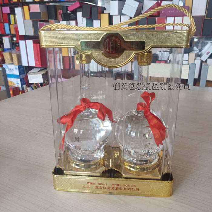 新款(kuan)手提(ti)兩瓶(ping)裝白酒(jiu)透明(ming)盒亞(ya)克力(li)PET透明(ming)酒盒(he)廠家(jia)供應(ying)訂做(zuo)