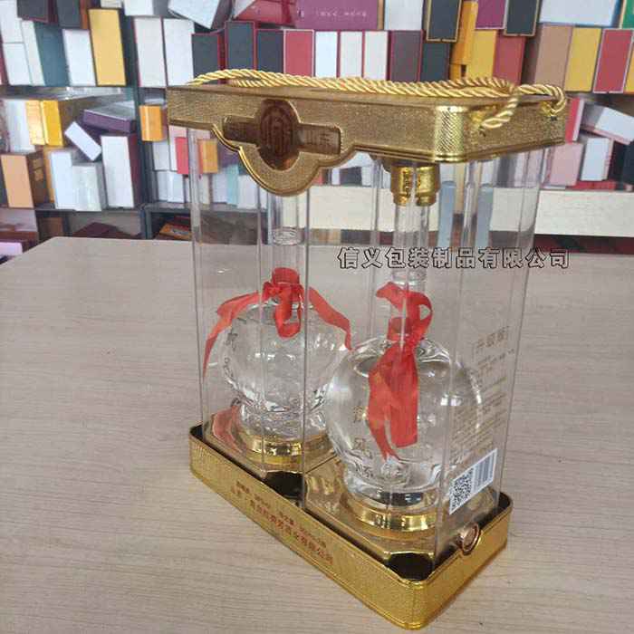 手提(ti)兩瓶(ping)透明(ming)酒盒(he)