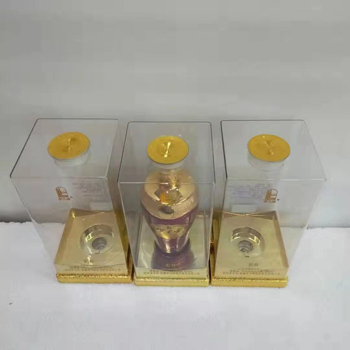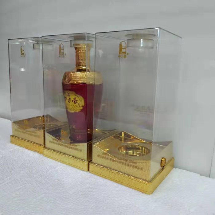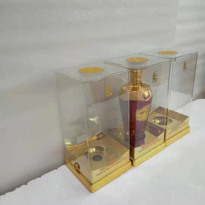 好(hao)看的(de)pet酒盒(he)包裝(zhuang)V形底(di)座亞(ya)克力(li)白(bai)酒透(tou)明盒(he)廠家(jia)定做(zuo)